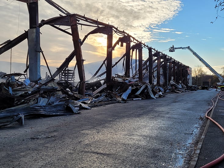 Chief Fire Officer Jon Pryce has been at the scene of the #HooFarm fire again this morning with ACFO Guy Palmer and the pictures he has taken show the extent of the fire and its aftermath.